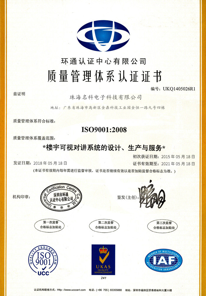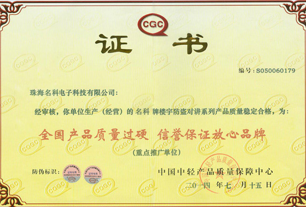 樓宇對(duì)講質(zhì)量認(rèn)證
