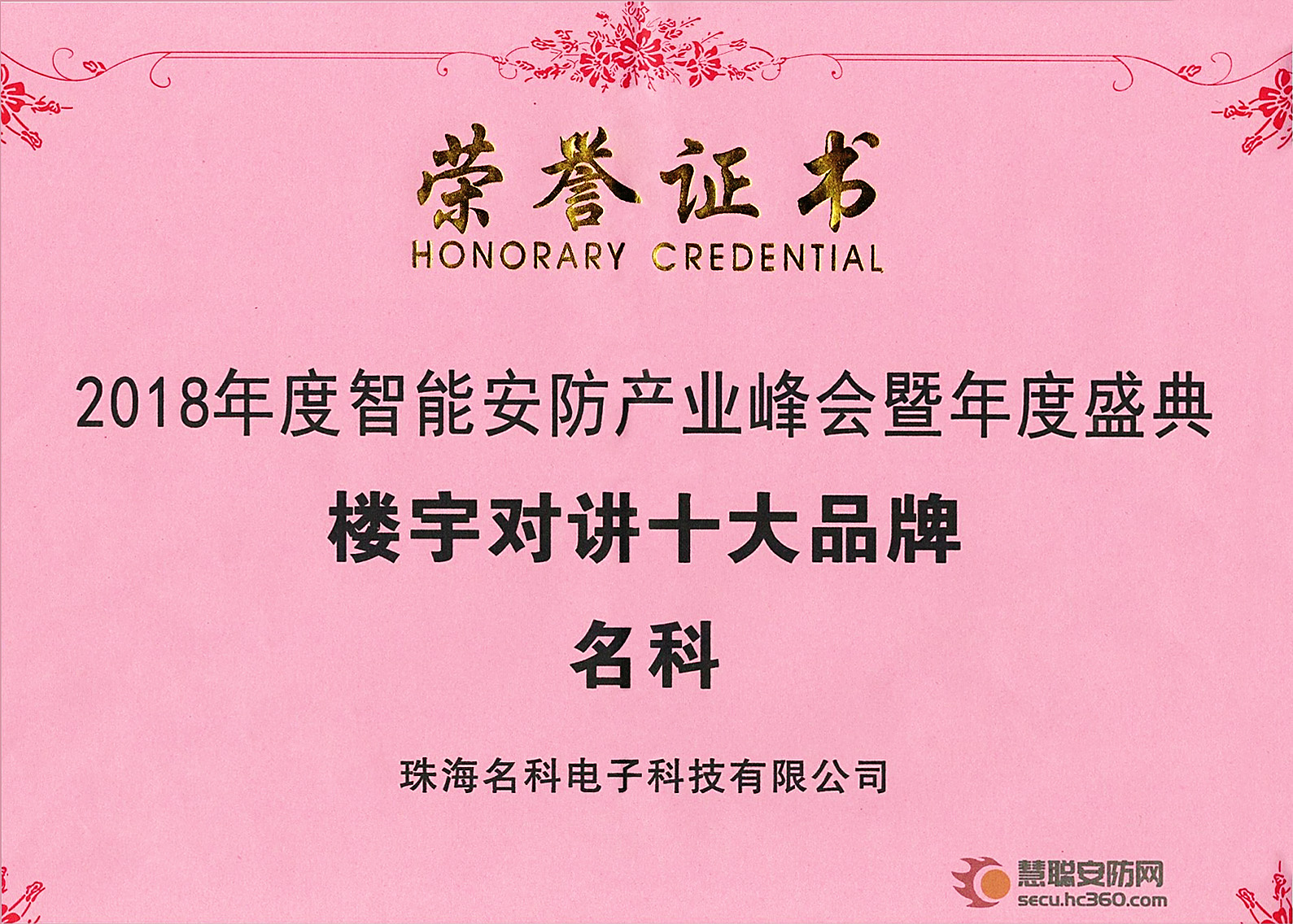 十大品牌榮譽(yù)證書